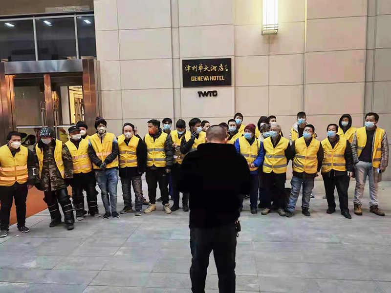 2021年1月15日18:00時(shí),天津三建公司二分公司接到天津市河西區(qū)住建委改造津利華大酒店作為新冠疫情集中隔離點(diǎn)的緊急命令。二分公司黨總支緊急部署,迅速成立樾梅江項(xiàng)目黨支部和張家窩南站黨小組為主的戰(zhàn)斗小組,緊急動(dòng)員黨員干部奔赴施工現(xiàn)場(chǎng),調(diào)集勞動(dòng)力和施工物資,黨支部書記劉鈁,以及王軍、張宇、邢勝,邢建公,李盛等黨員干部分別從各自的工作崗位、家中向津利華酒店集結(jié),邊開車邊組織勞動(dòng)力和施工物資、車輛,僅僅一個(gè)小時(shí),350人的應(yīng)急勞務(wù)大軍和各種施工物資全部集結(jié)到位。