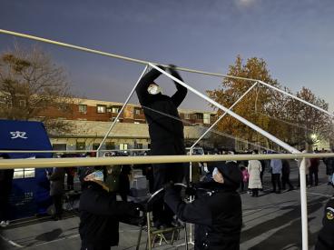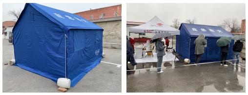 11月29日,蝶橋公寓社區(qū)按照市里統(tǒng)一安排開展核酸篩查工作,由于天氣溫度急劇下降,大直沽街道和社區(qū)領(lǐng)導(dǎo)購(gòu)買帳篷送到天津三建公司核酸采樣點(diǎn),為戰(zhàn)嚴(yán)寒,奮戰(zhàn)在防疫防控一線的工作人員遮風(fēng)擋雨。但是帳篷送到天津三建公司核酸采樣點(diǎn)后沒有安裝人員,這可叫社區(qū)大篩工作人員犯了難。天津三建公司黨委得知此情況后,命令后勤保障部立即投入到帳篷的搭建工作中,由于沒有圖紙,工作人員通過不停地研究和探索,將帳篷終于搭建成功!最后又找來繩子和重物將帳篷加固固定,使得在大風(fēng)天氣帳篷仍然屹立不倒。隨著帳篷的搭建成功,三建公司采樣點(diǎn)立刻又開通了一條核酸檢測(cè)采樣通道,加快了核酸采樣速度,使得居民不用再寒風(fēng)里等候太長(zhǎng)的時(shí)間,核酸檢測(cè)人員也不會(huì)因?yàn)槭謨鼋┝四貌环€(wěn)采樣拭子,有了帳篷大家身體上暖和了,心里也暖暖的。