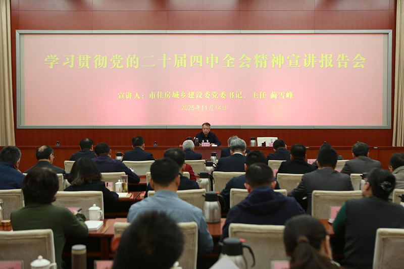 按照市委統(tǒng)一部署,11月14日,市住房城鄉(xiāng)建設(shè)委舉行學(xué)習(xí)貫徹黨的二十屆四中全會(huì)精神宣講報(bào)告會(huì)。委黨委書記、主任藺雪峰作宣講報(bào)告。委領(lǐng)導(dǎo)班子成員,系統(tǒng)處級(jí)以上干部及黨員骨干參加。