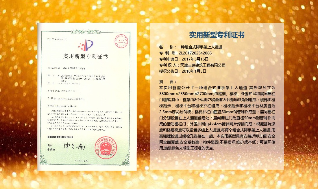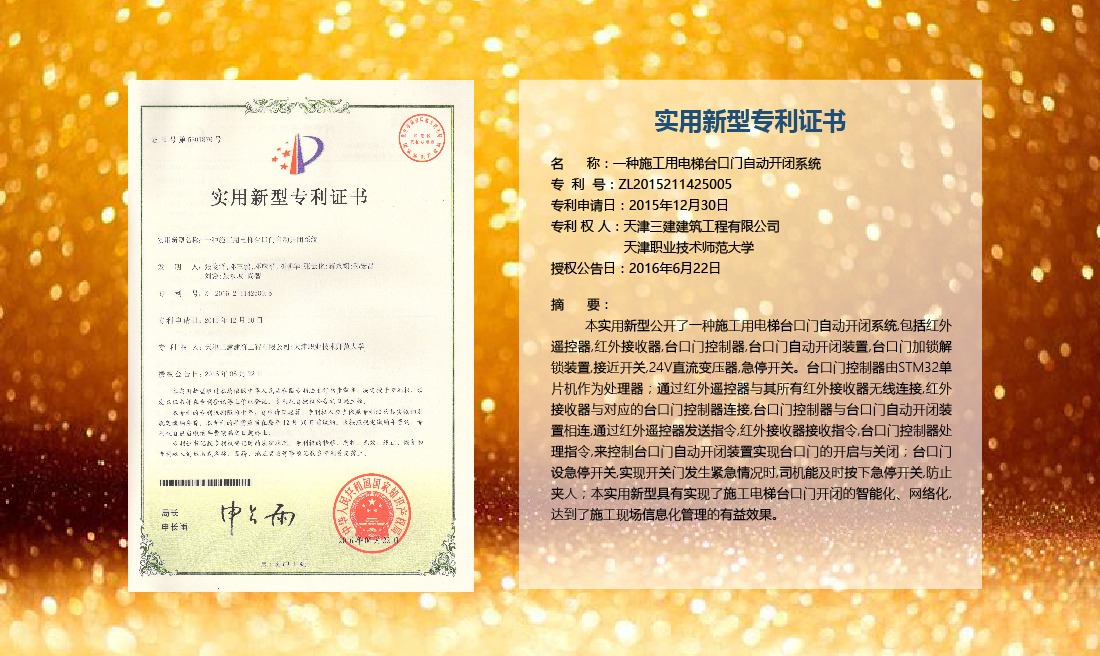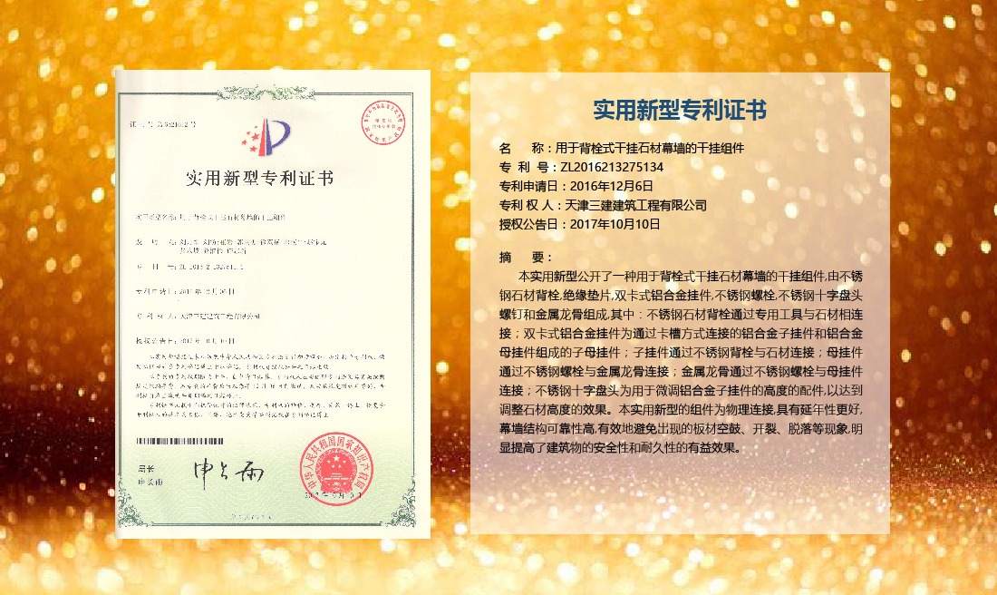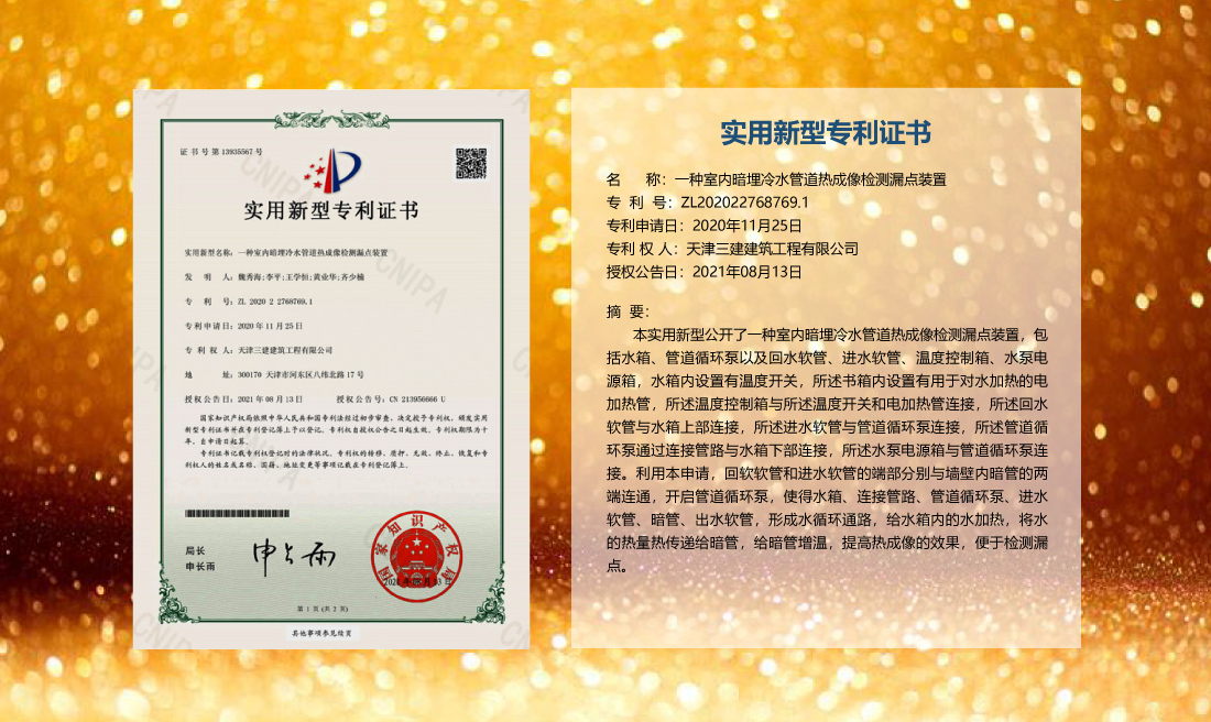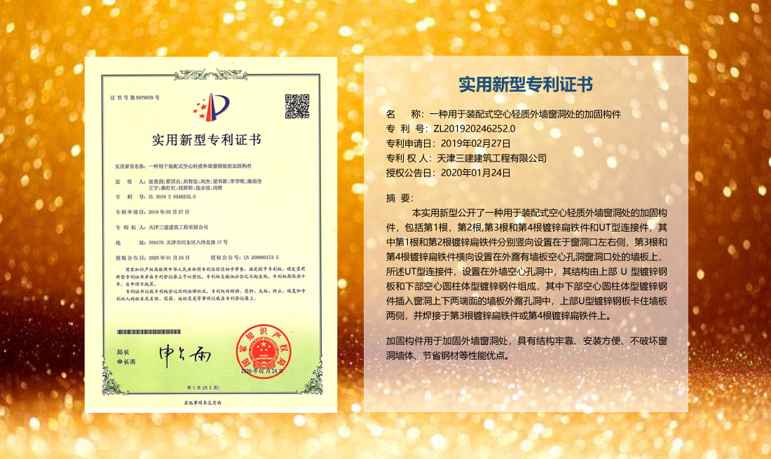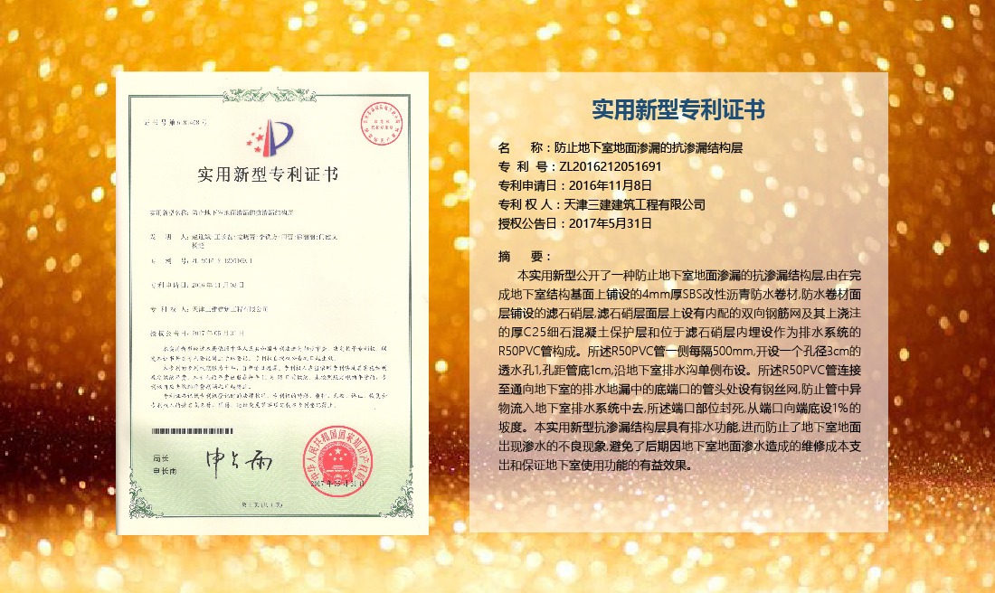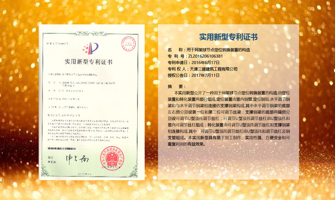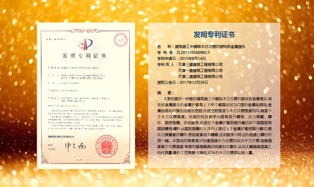 三建公司在總結(jié)施工經(jīng)驗(yàn)的基礎(chǔ)上,不斷發(fā)明創(chuàng)新,共獲得國(guó)家知識(shí)產(chǎn)權(quán)局授權(quán)專利71項(xiàng),其中,國(guó)家發(fā)明專利12項(xiàng),國(guó)家實(shí)用新型專利59項(xiàng)。囊括建筑、市政、巖土、道橋等多領(lǐng)域,凝聚了公司廣大工作人員的寶貴智慧和工程建筑者們的辛勤汗水。