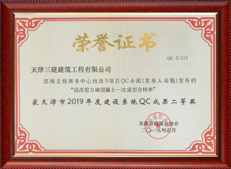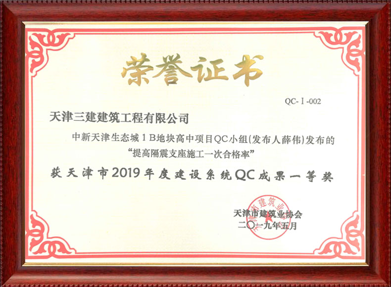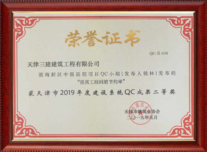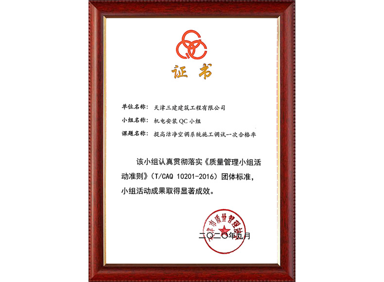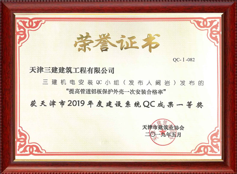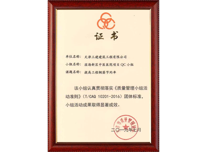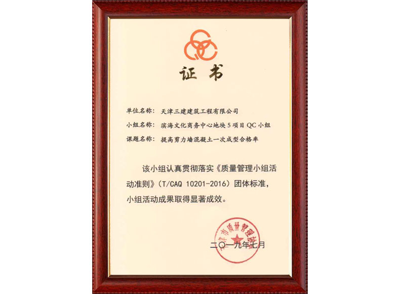 2019天津市質(zhì)量協(xié)會優(yōu)秀QC小組(濱五)