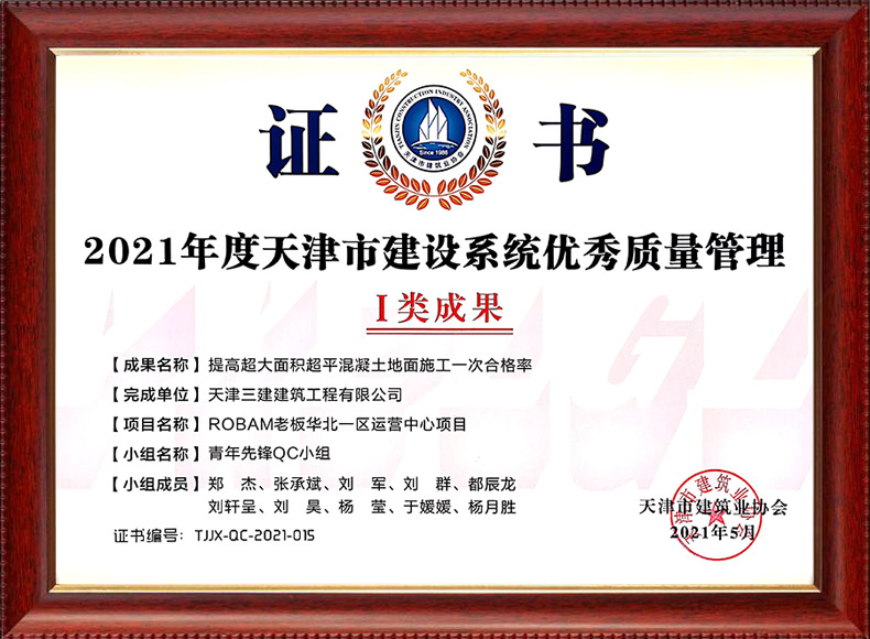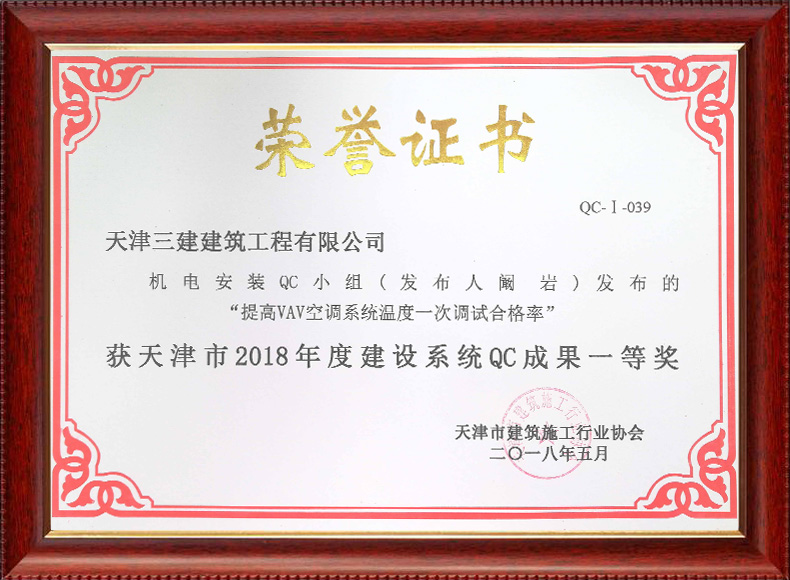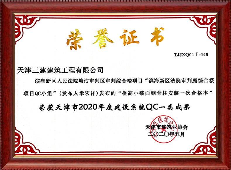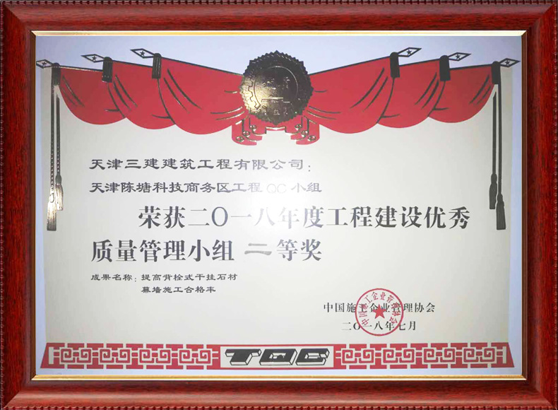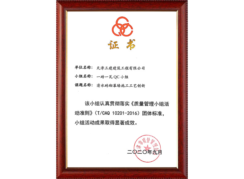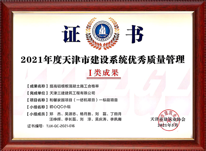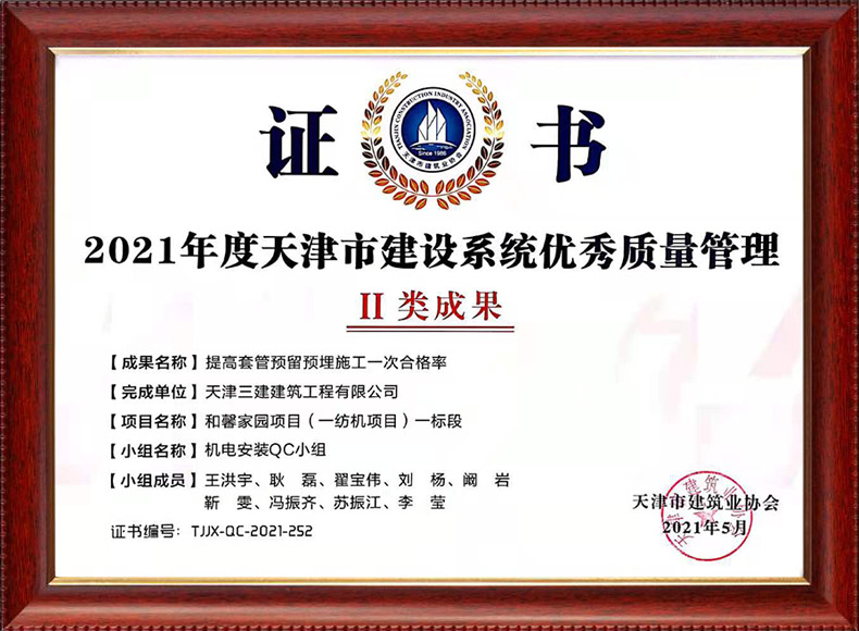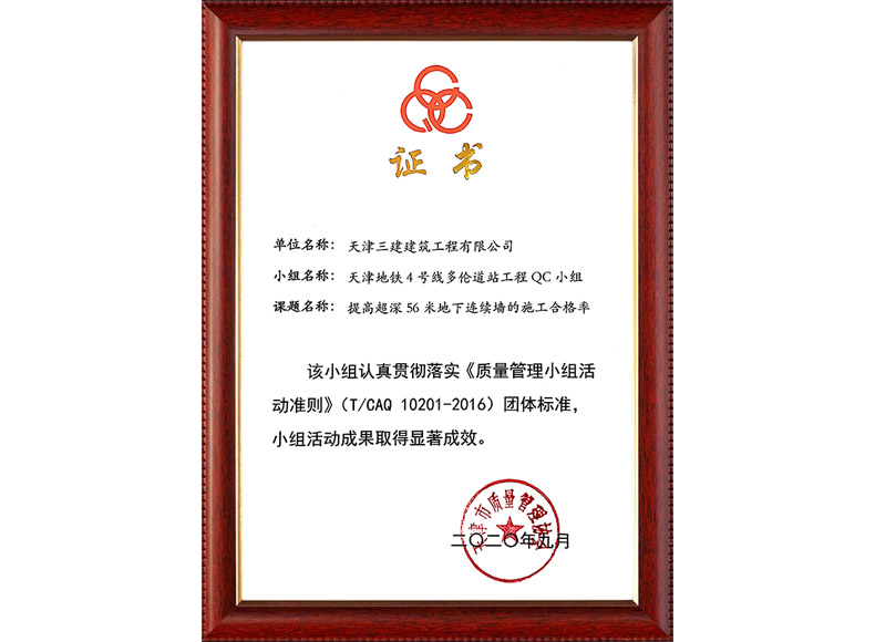 2019天津市質(zhì)量協(xié)會優(yōu)秀QC小組(濱五)