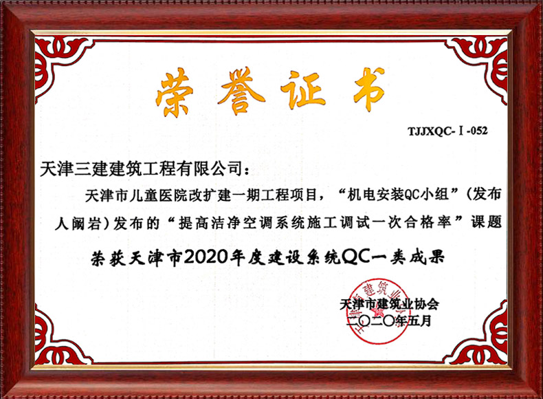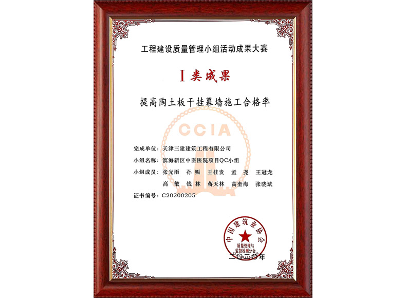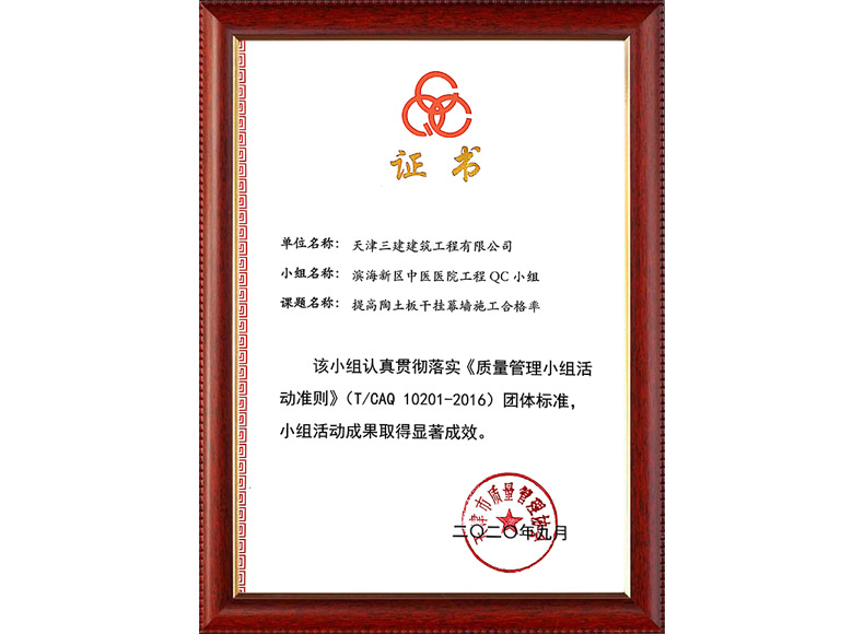 2020中建協(xié)QC成果I類成果(濱海新區(qū)中醫(yī)醫(yī)院項目)