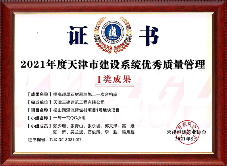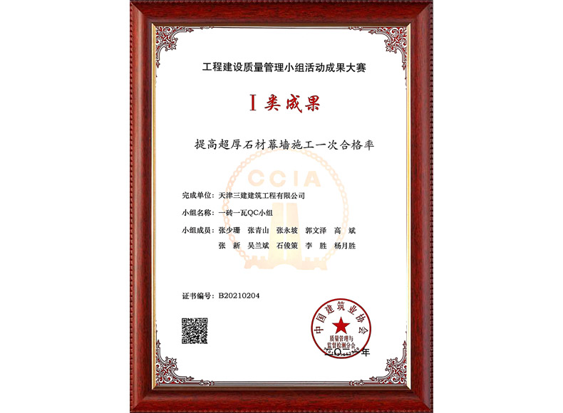2021中建協(xié)I類 提高超厚石材幕墻施工一次合格率