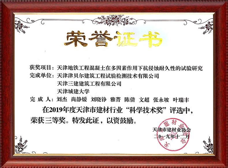 2020天津市建材行業(yè)“科學(xué)技術(shù)獎”三等獎