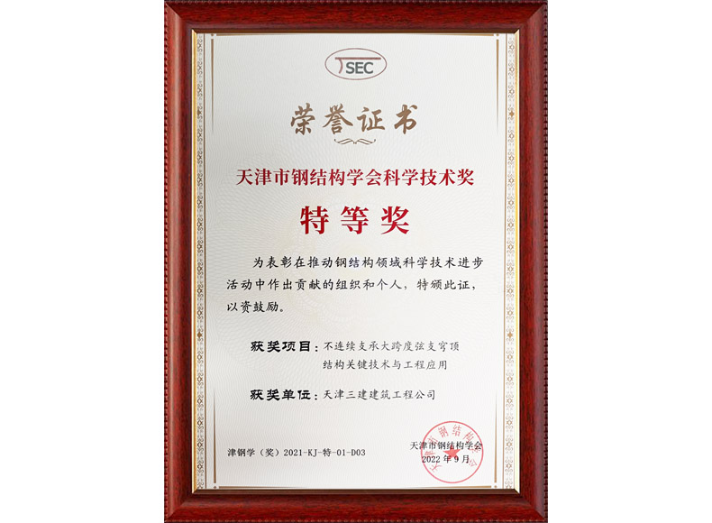 2022 天津市鋼結(jié)構(gòu)學(xué)會科學(xué)技術(shù)獎