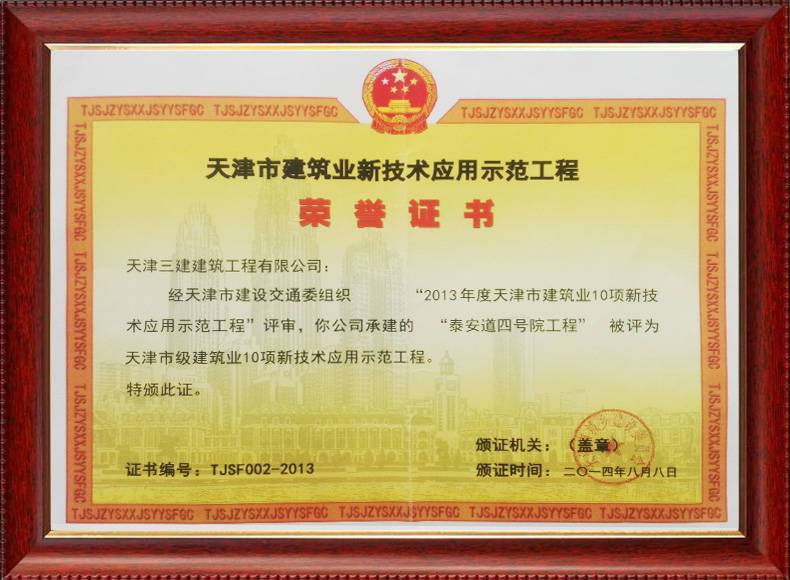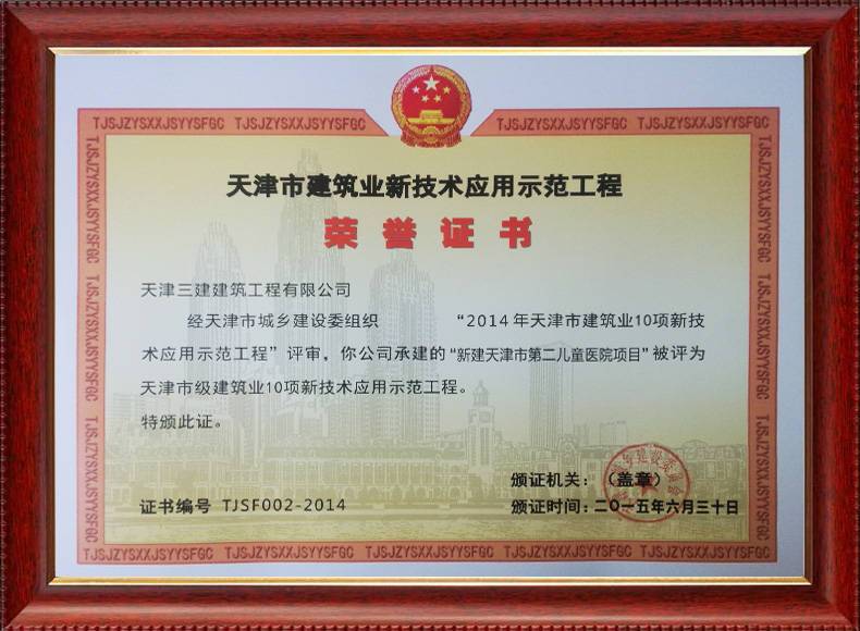 三建公司推廣應(yīng)用住建部十項(xiàng)新技術(shù),創(chuàng)建新技術(shù)應(yīng)用示范工程17項(xiàng),其中國家級(jí)4項(xiàng),市級(jí)10項(xiàng);創(chuàng)建綠色施工示范工程3項(xiàng),住建部綠色施工科技示范工程1項(xiàng),對(duì)指導(dǎo)工程建設(shè)、提高工程質(zhì)量安全和施工管理水平發(fā)揮了重要作用。