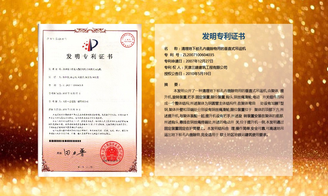 2010清理地下樁孔內(nèi)鑿除物用的垂直吊運機